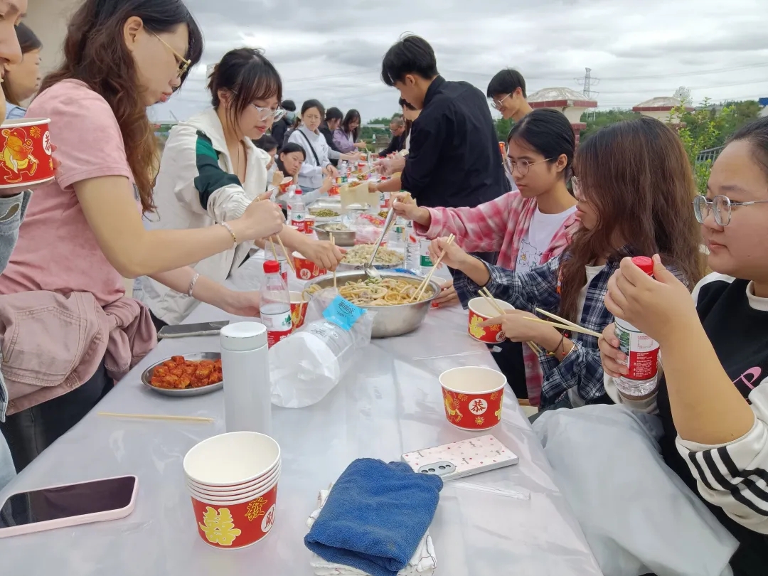 体验过刺绣的雅致,学子们又走进红安豆丝制作技艺传习所“品非遗”的烟火气。红安豆丝以大米、绿豆为原料,经磨浆、摊烙、切丝制成,蒸炒皆宜,口感软糯清香;红安鱼面则以鲜鱼、红薯粉为料,手工捶打塑形,炖煮后汤鲜面弹。品尝着这两道承载红安饮食文化的非遗美味,学子们从舌尖感受红安的风土人情,读懂了非遗融入日常的温暖。