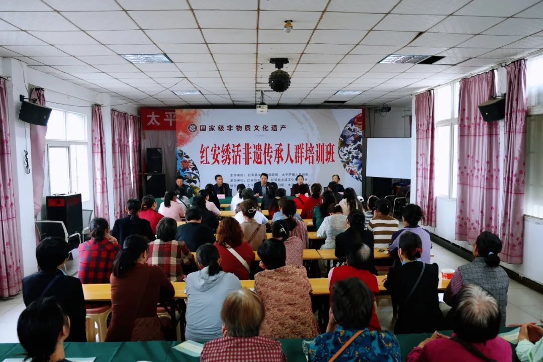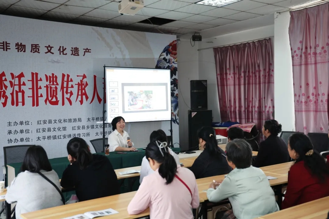 此次培训班由红安县文化和旅游局、太平桥镇人民政府联合主办,县文化馆、县乡镇文化服务协会承办,太平桥镇红安绣活传习所、太平桥镇文化站协办,多方联动为非遗传承保驾护航。